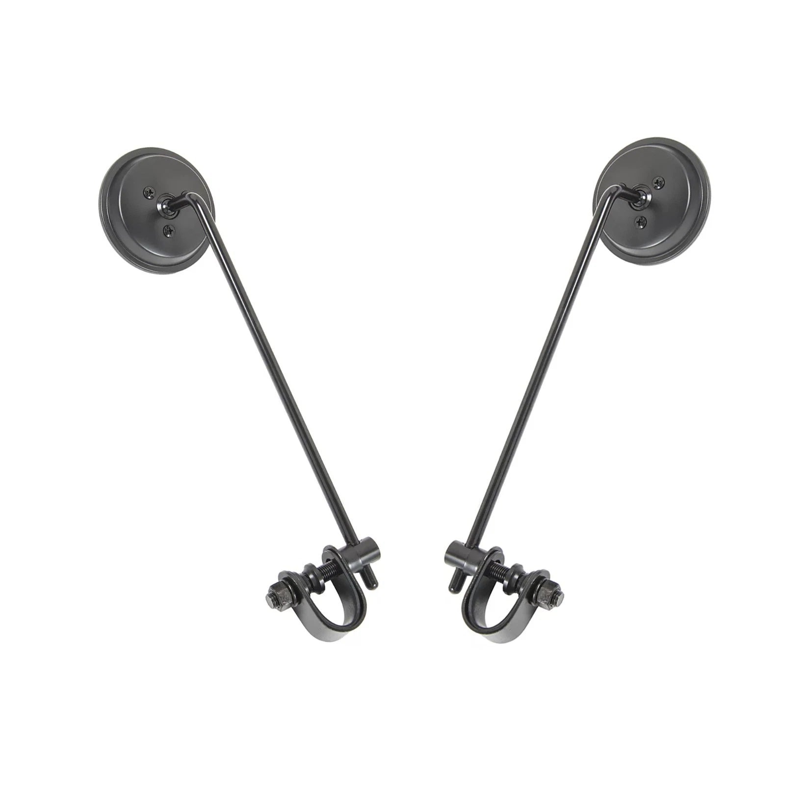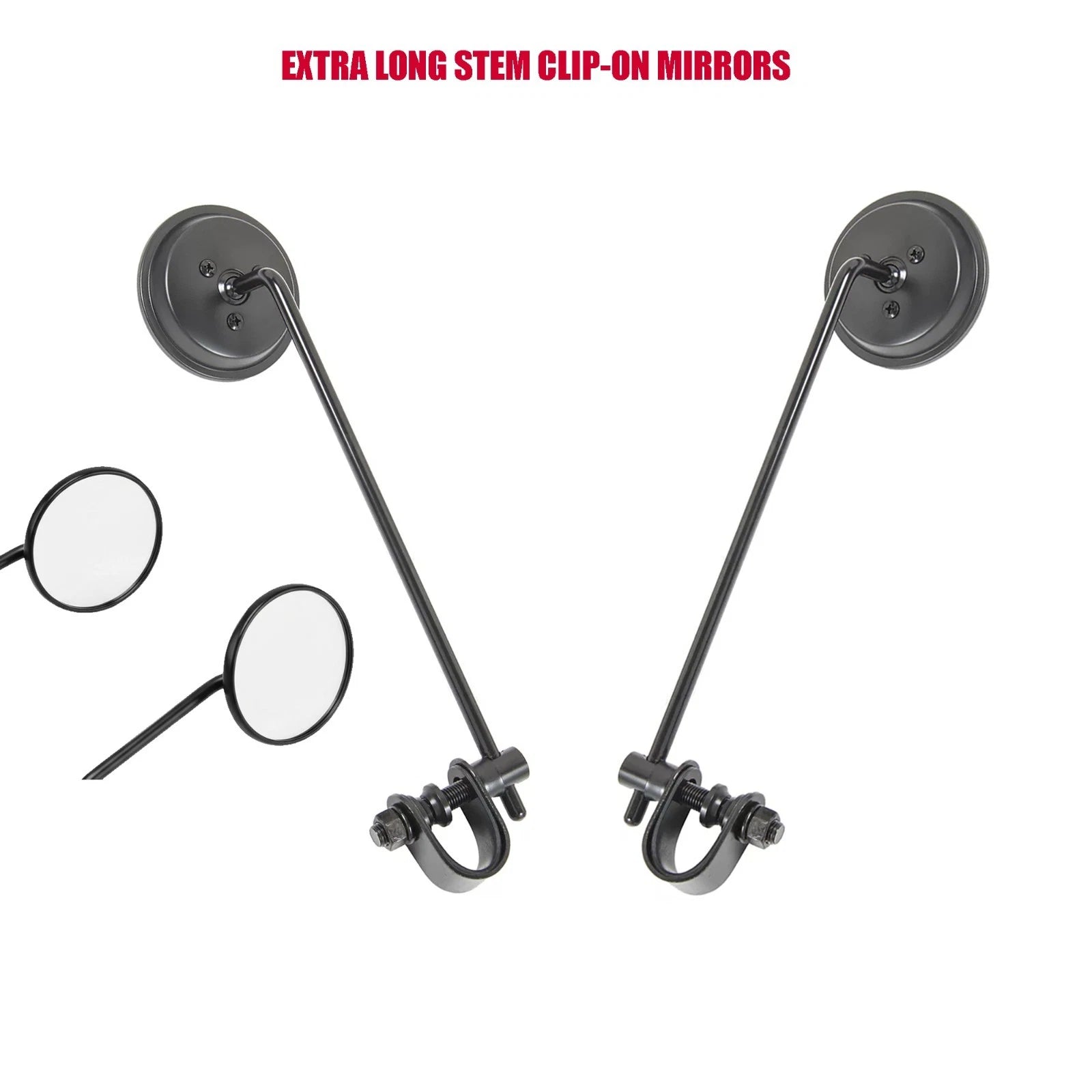 Motorcycle Cafe Racer Long Stem Black Clamp on 3" Round Mirror 22mm 7/8"- 1" Bar