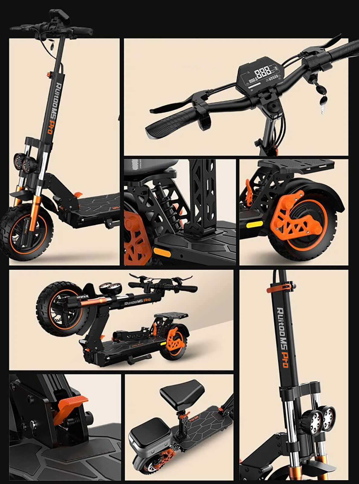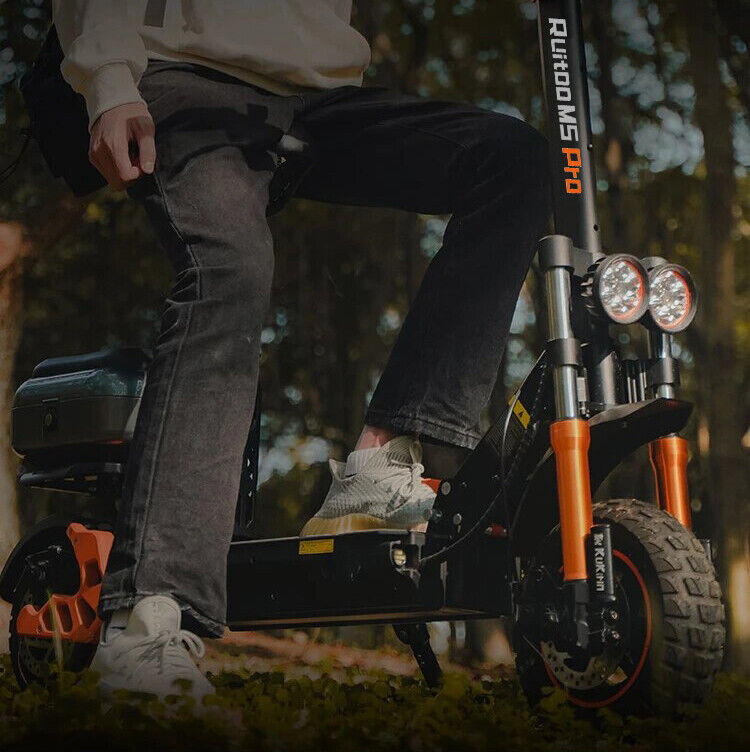 - High safety - The powerful Ruitoo M5 Pro electric scooter is designed with dual-disc brakes to let you brake safely and extra bright LED Lighting to light your way, giving you complete protection.