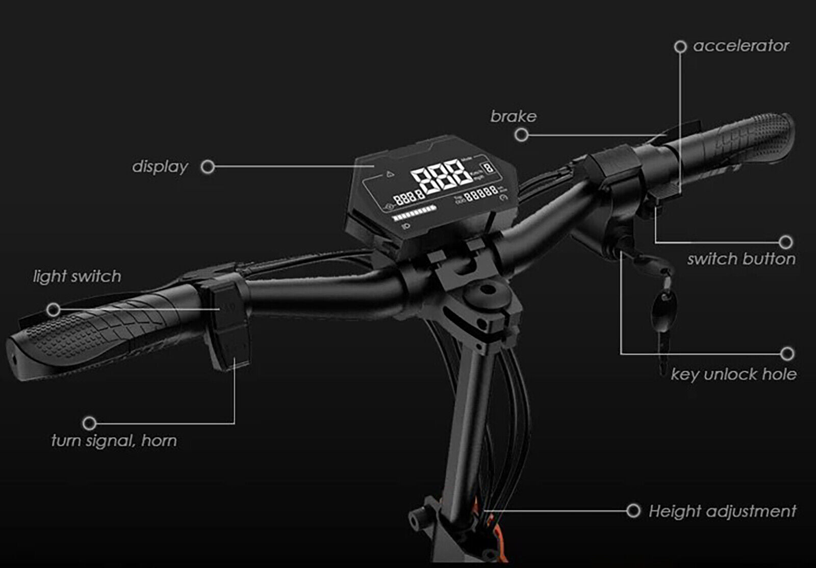 - Please note that the position of the key barrel could either be on the right side of the handlebar or at the center of the stem, based on stock availability and production batches.